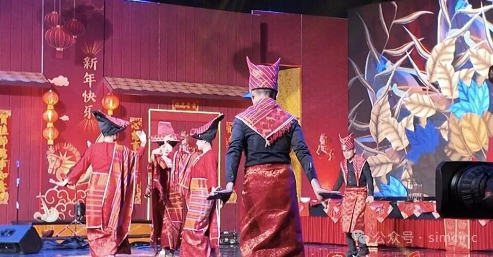 晚会现场,多元文化碰撞迸发精彩火花。北苏门答腊卡罗族舞蹈团演绎的《MburingManggis–MejuahJuah》,与客家春节“祈福纳祥”的传统年俗深度契合,传递出人类共通的情感追求。印尼梅州会馆昂格隆乐队40位艺术家携手,用印尼传统竹筒乐器昂格隆演奏中国风新年旋律,传递着印尼深厚的文化底蕴,与梅州客家风情遥相呼应。